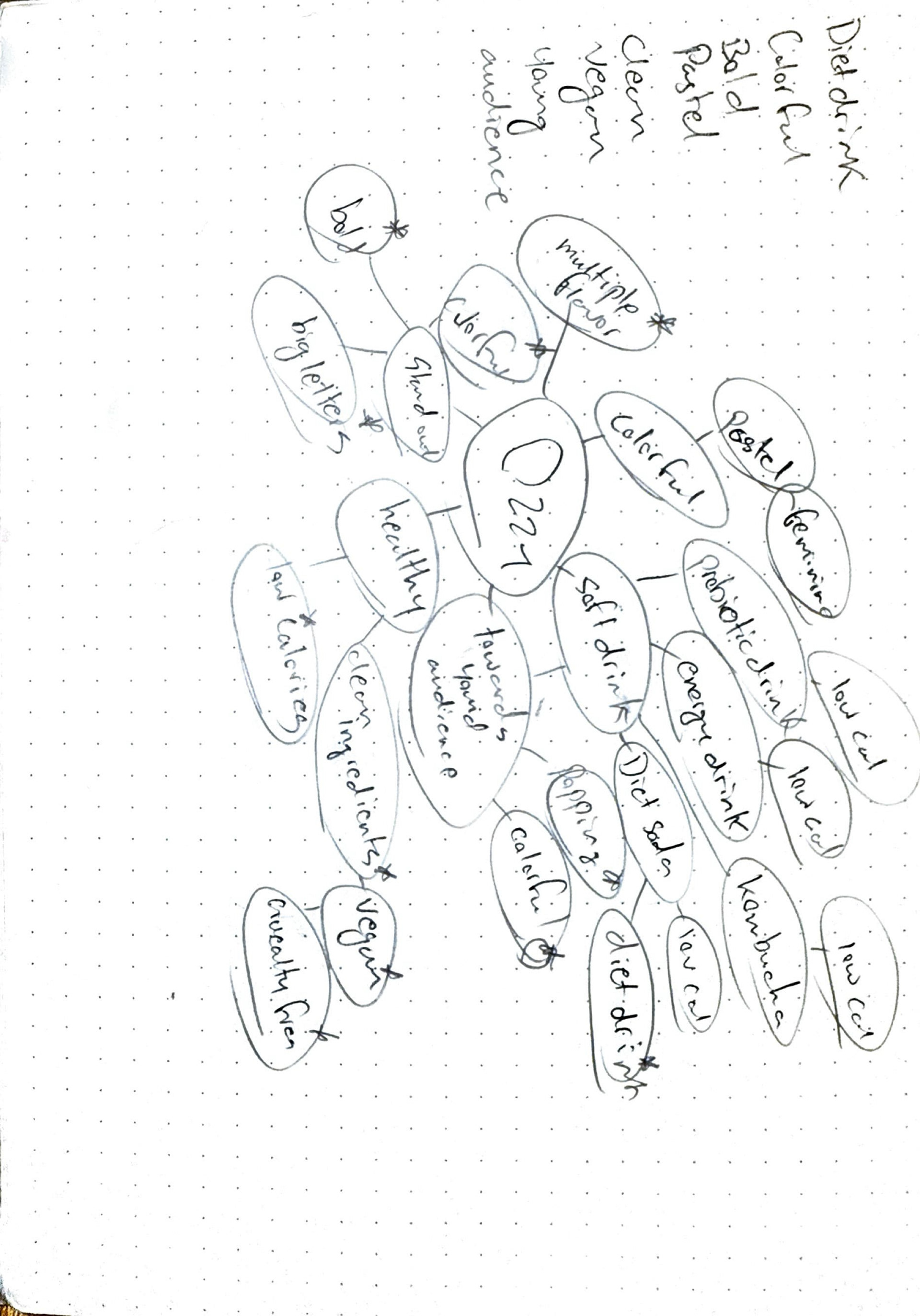 To begin this project, I conducted thorough research on similar beverage brands. I also evaluated other designs and concepts to determine the scope of what I could achieve. I then began to brainstorm and write down all my ideas and try to map out a clear direction. Afterwards, I start sketching multiple ideas down on paper. After I decide on a couple of ideas I vectorize. These steps were crucial in gaining a comprehensive understanding of the brand and audience, which allowed me to execute a more effective design. The research boards shown below were created using Milanote.